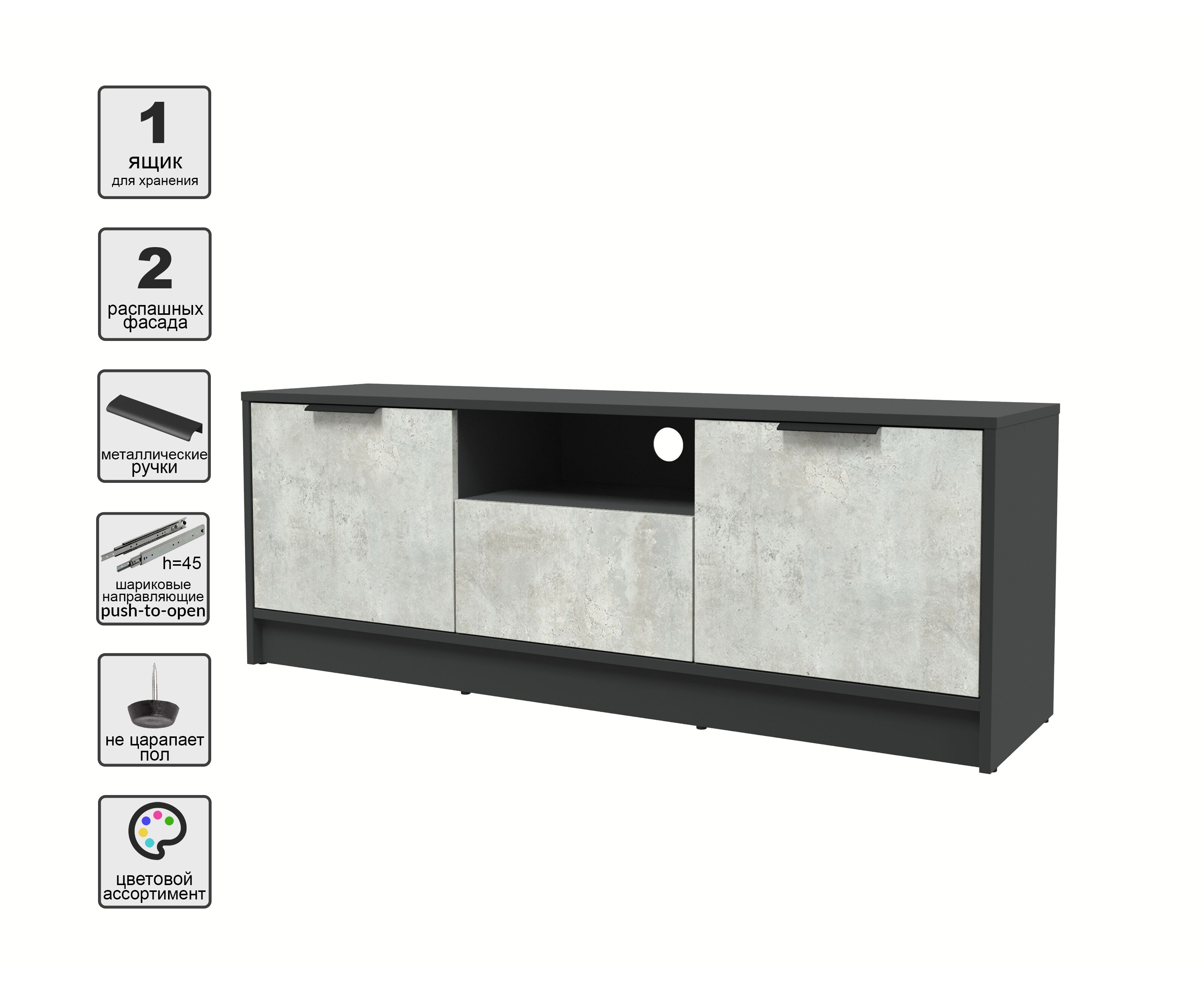 Тумба (ТВ) КТ-ТВ3-50 Концепт (антрацит/бетон лайт)