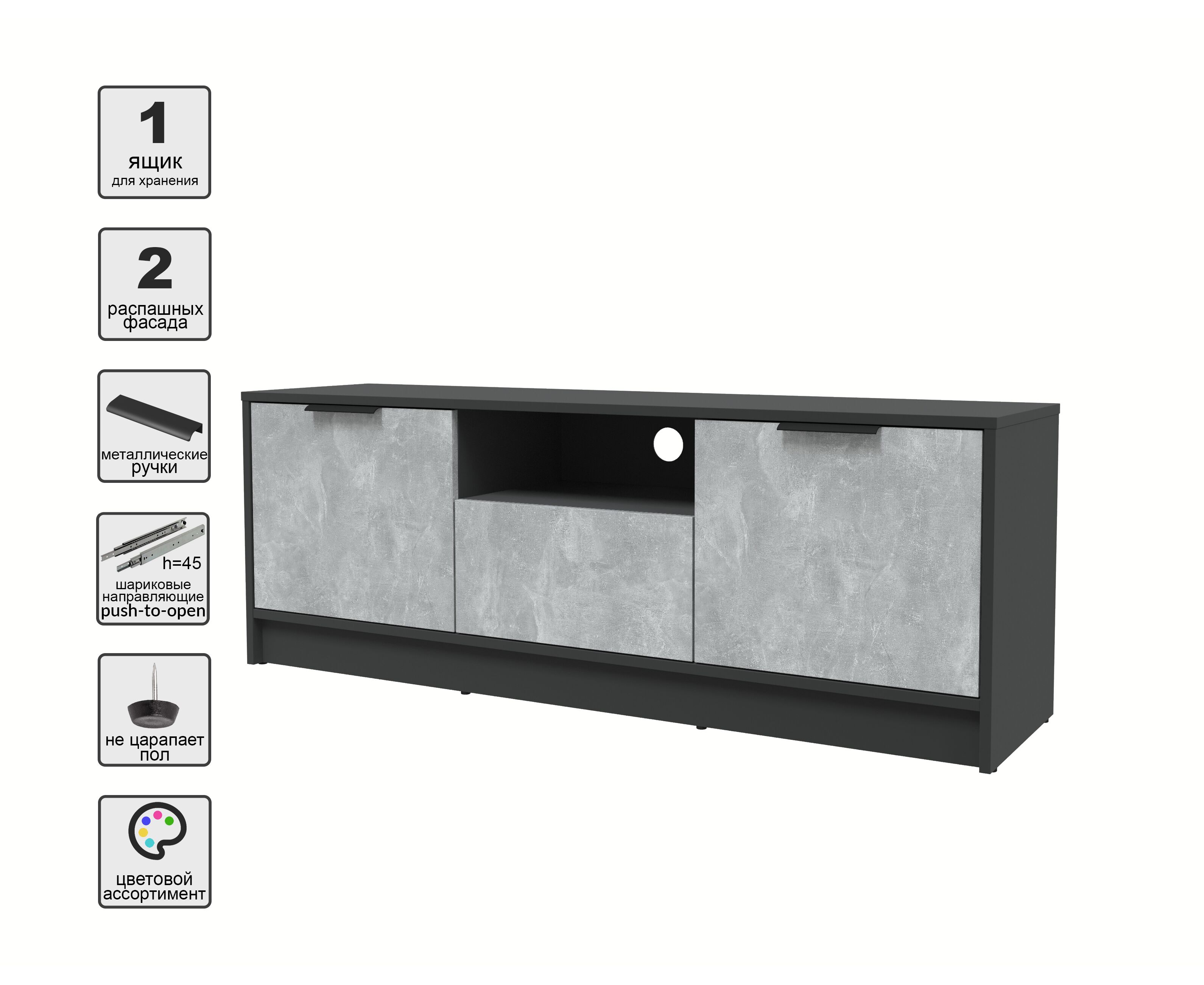 Тумба (ТВ) КТ-ТВ3-50 Концепт (антрацит/бетон)