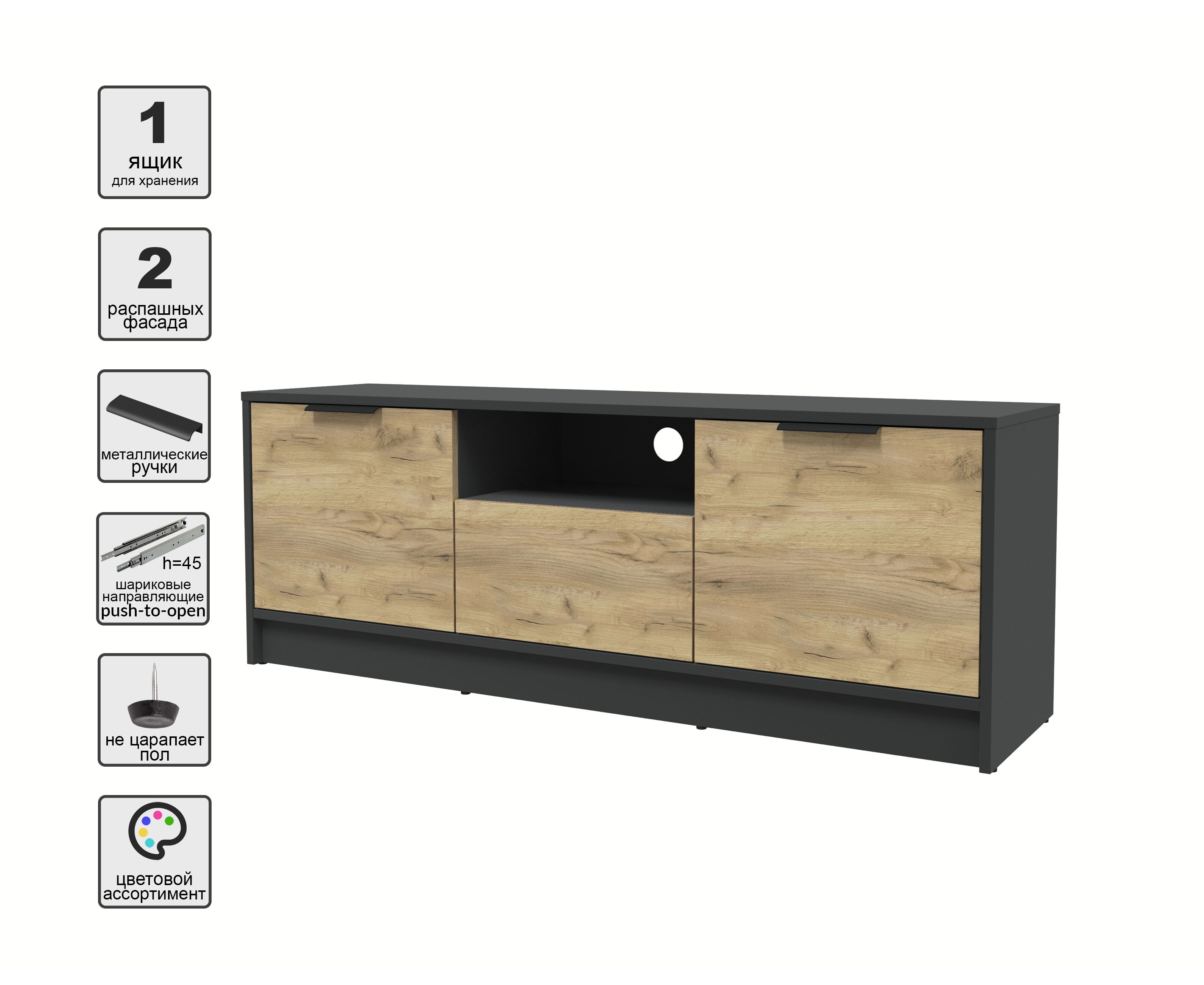 Тумба (ТВ) КТ-ТВ3-50 Концепт (антрацит/дуб золотой)