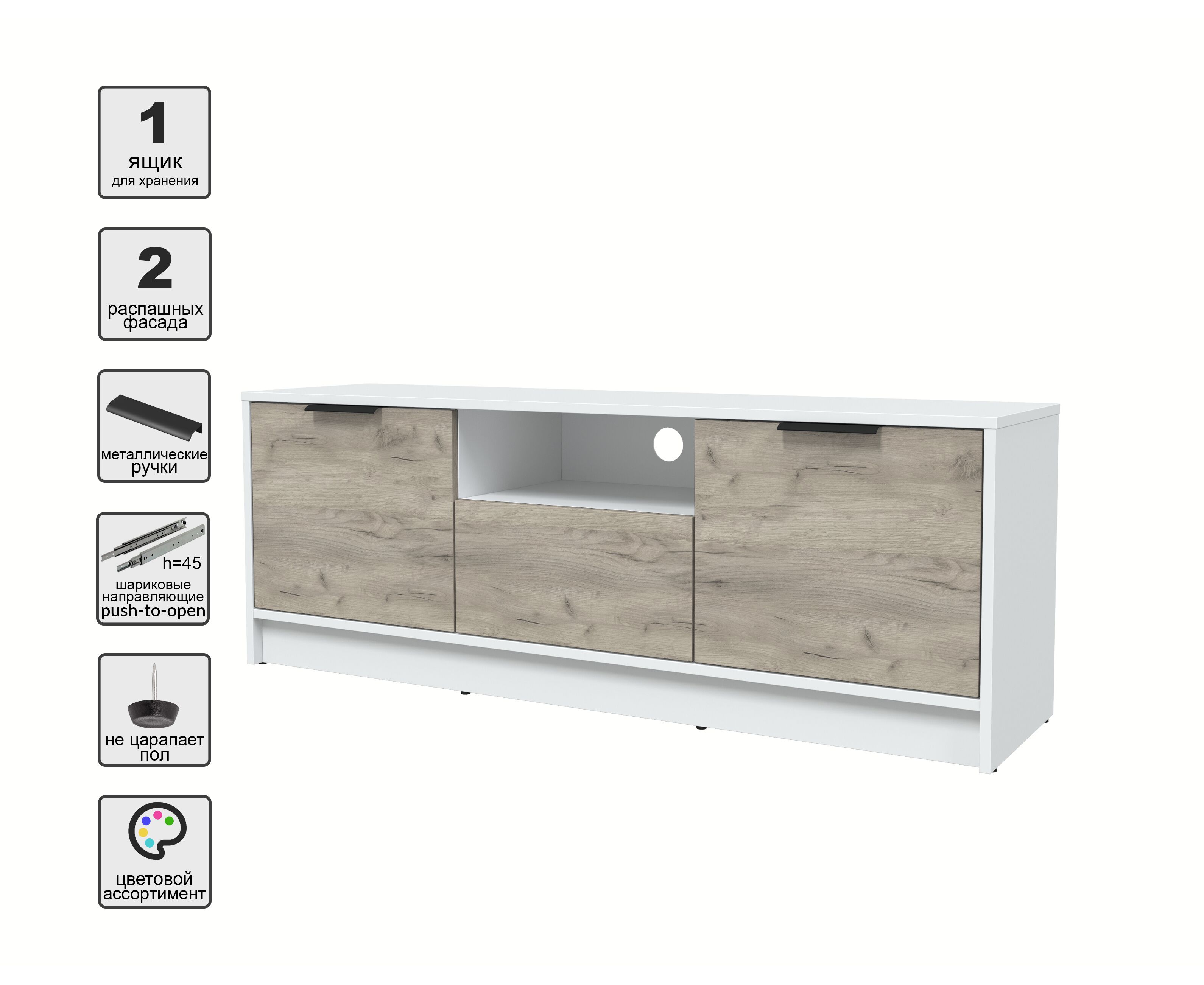 Тумба (ТВ) КТ-ТВ3-50 Концепт (белый/дуб серый)