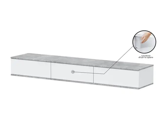 Крепление к стене на усиленную шину четырьмя регулируемыми навесами. Выдвижные ящики с направляющими с встроенным механизмом push-to-open. Максимальная нагрузка 35кг в случае отдельного использования. Дюбеля не входят в комплект изделия. Рекомендуется закрепить с рядом стоящими шкафами/тумбами.