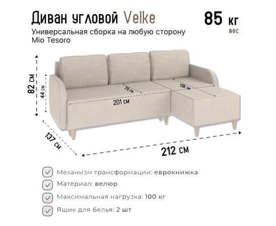 Угловой диван-кровать VELKE SB3CHL (Skiftebo Beige RU)