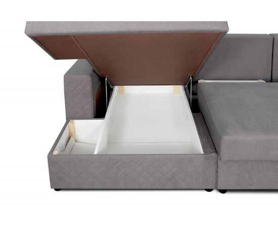 Поворотный – угловой диван раскладывается путем поворота подвижной части на 90 градусов параллельно стационарной части и фиксируется специальным зацепом.