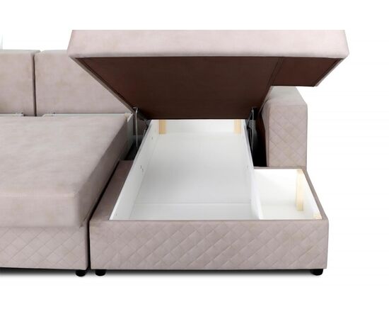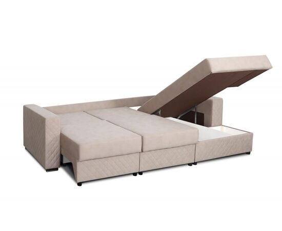 Поворотный – угловой диван раскладывается путем поворота подвижной части на 90 градусов параллельно стационарной части и фиксируется специальным зацепом.