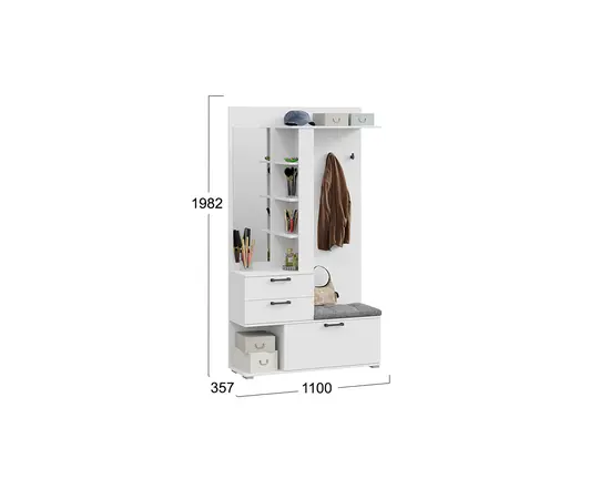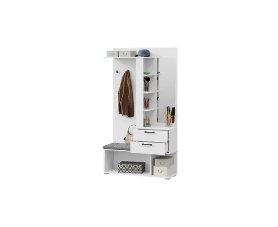 Вешалка комбинированная с крючками и зеркалом Эрика (белый ясень)